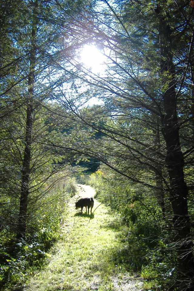 With piney woods and muddy ditch.